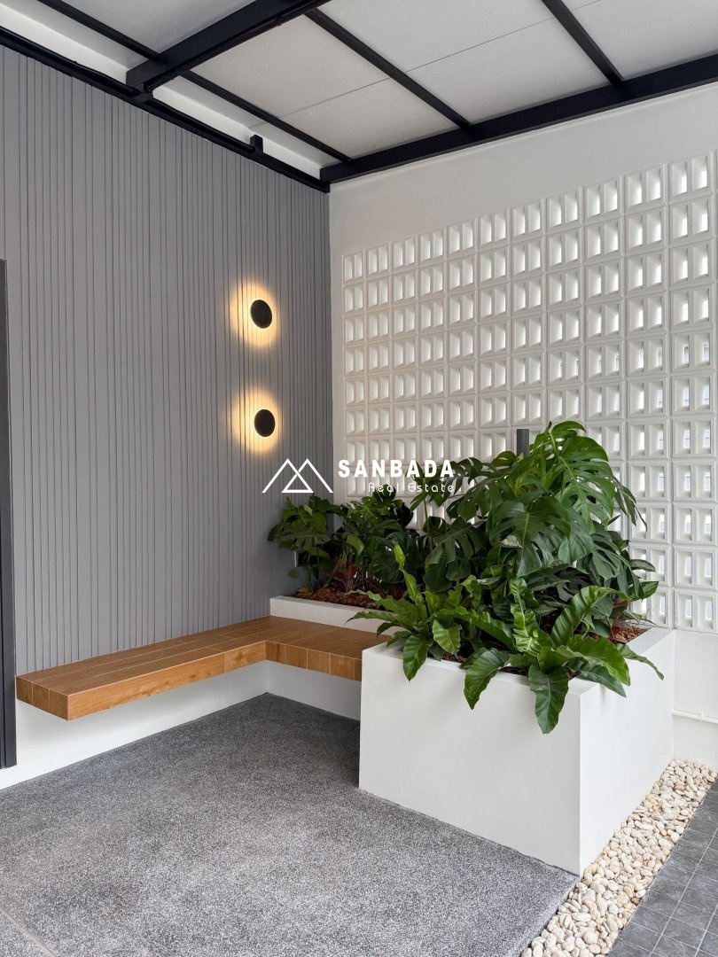 • 🌿 โซนนั่งเล่นหน้าบ้าน + ตกแต่งต้นไม้